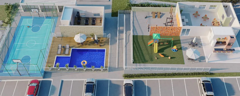No Gran VIC Prisma, você conta com um condomínio fechado com lazer completo entregue decorado e mobiliado, incluindo piscina, espaço gourmet, salão de festas, quadra, academia, pet place, preparação para mercadinho e muito mais.