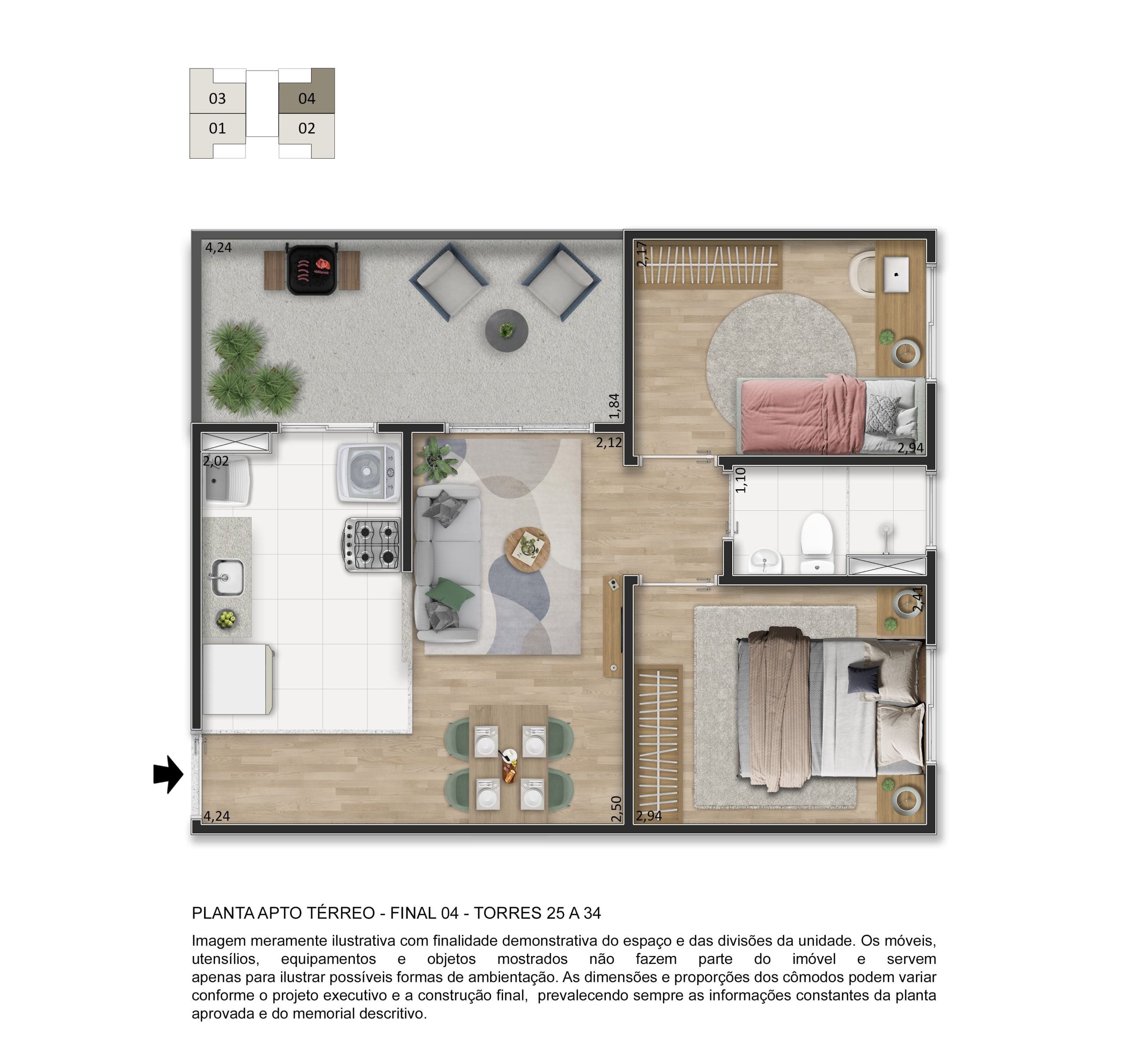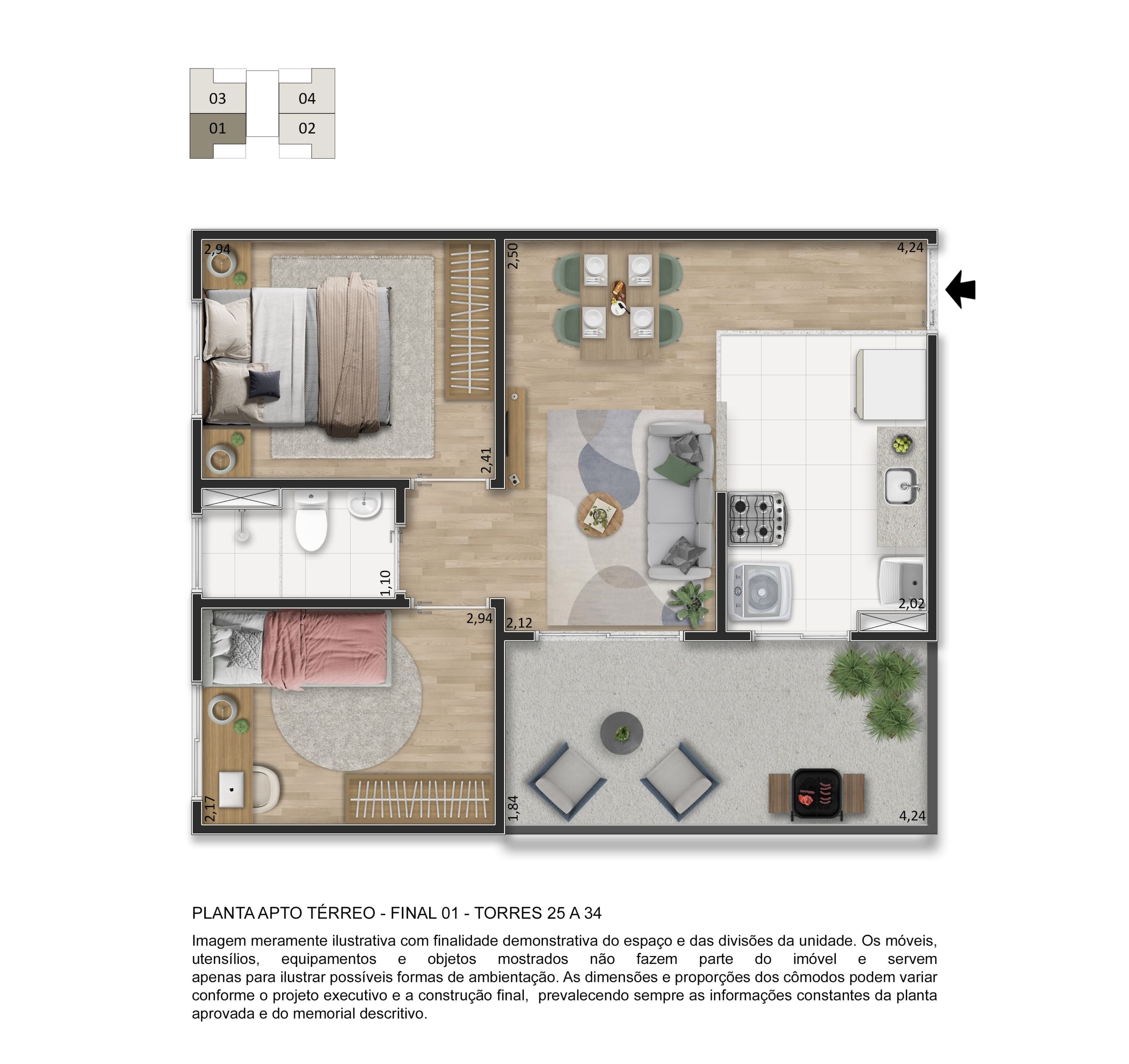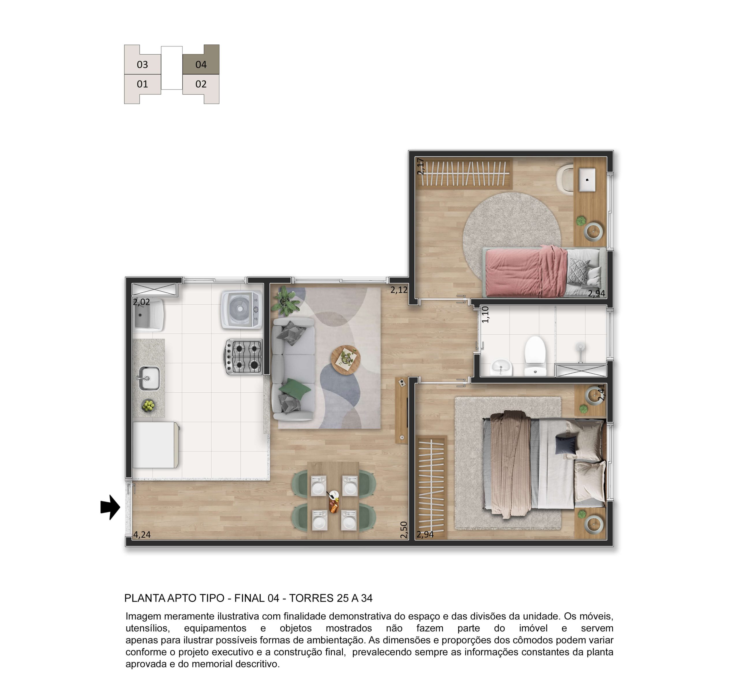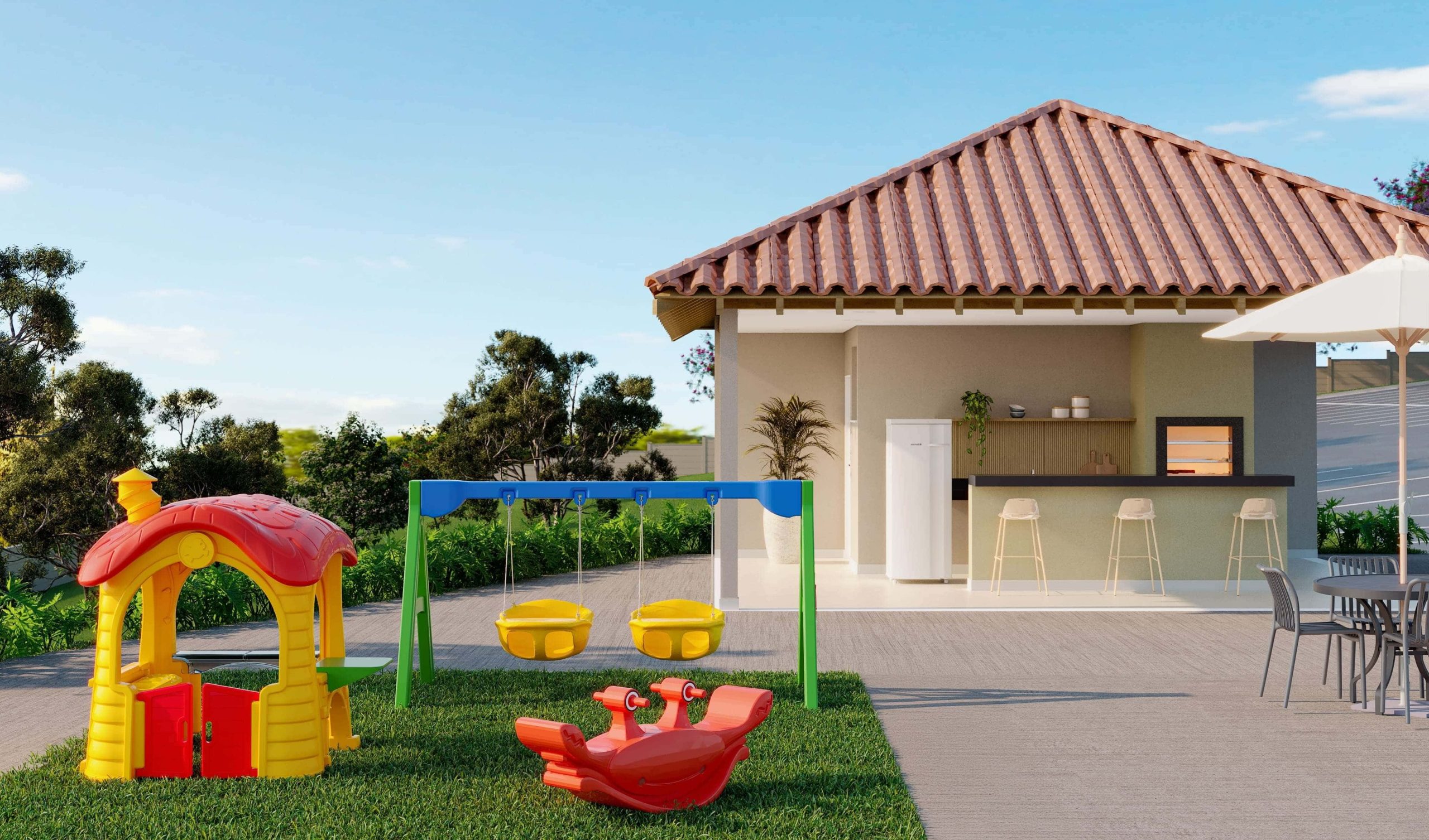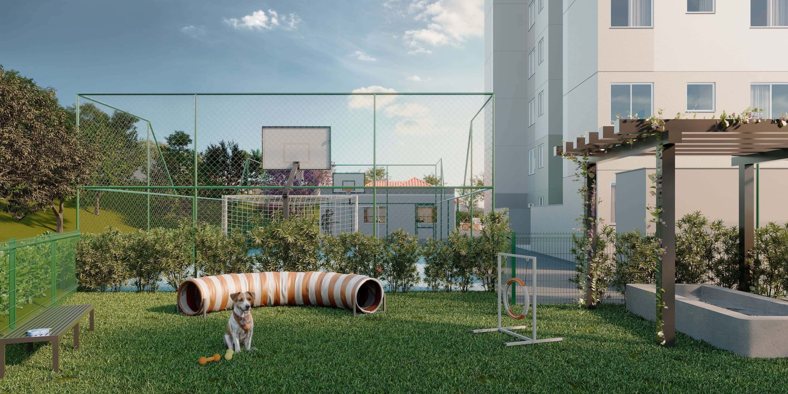 O lazer é completo e entregue decorado e mobiliado, com piscina, quadra esportiva, salão de festas, academia, playgrounds, espaço fitness, espaço gourmet, pet place, bicicletário, espaço zen e muito mais, garantindo momentos especiais para toda a família.