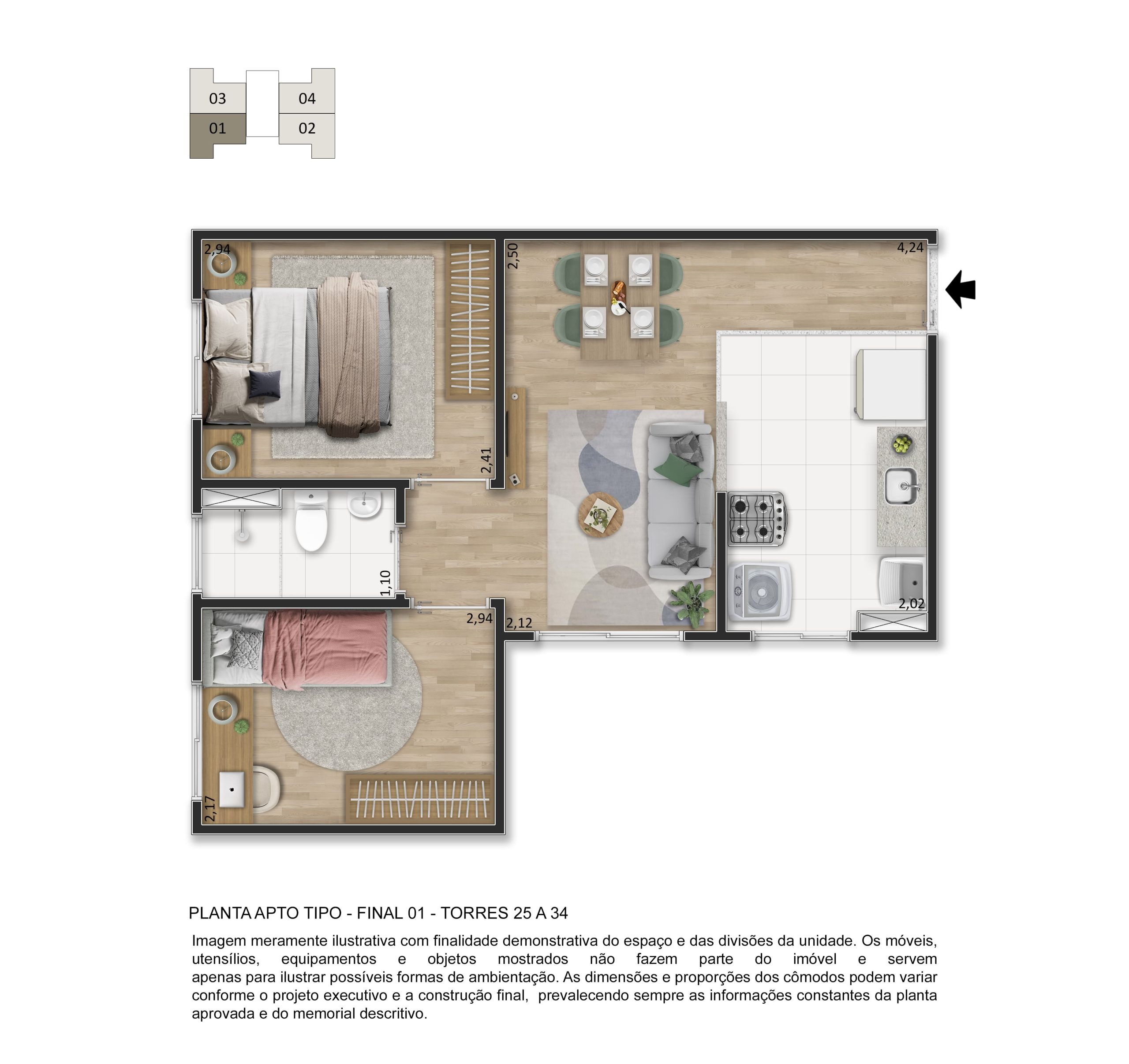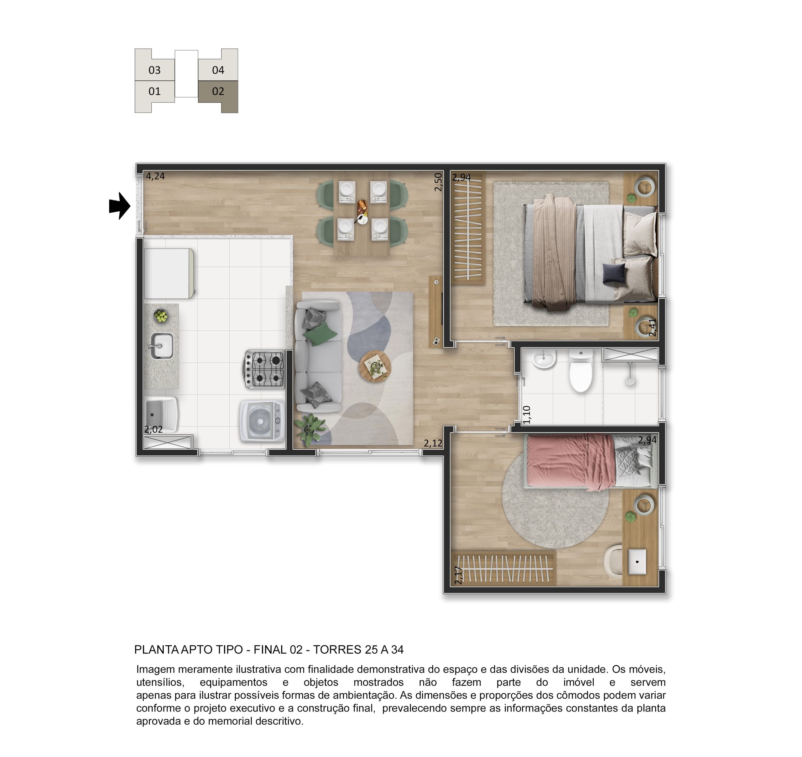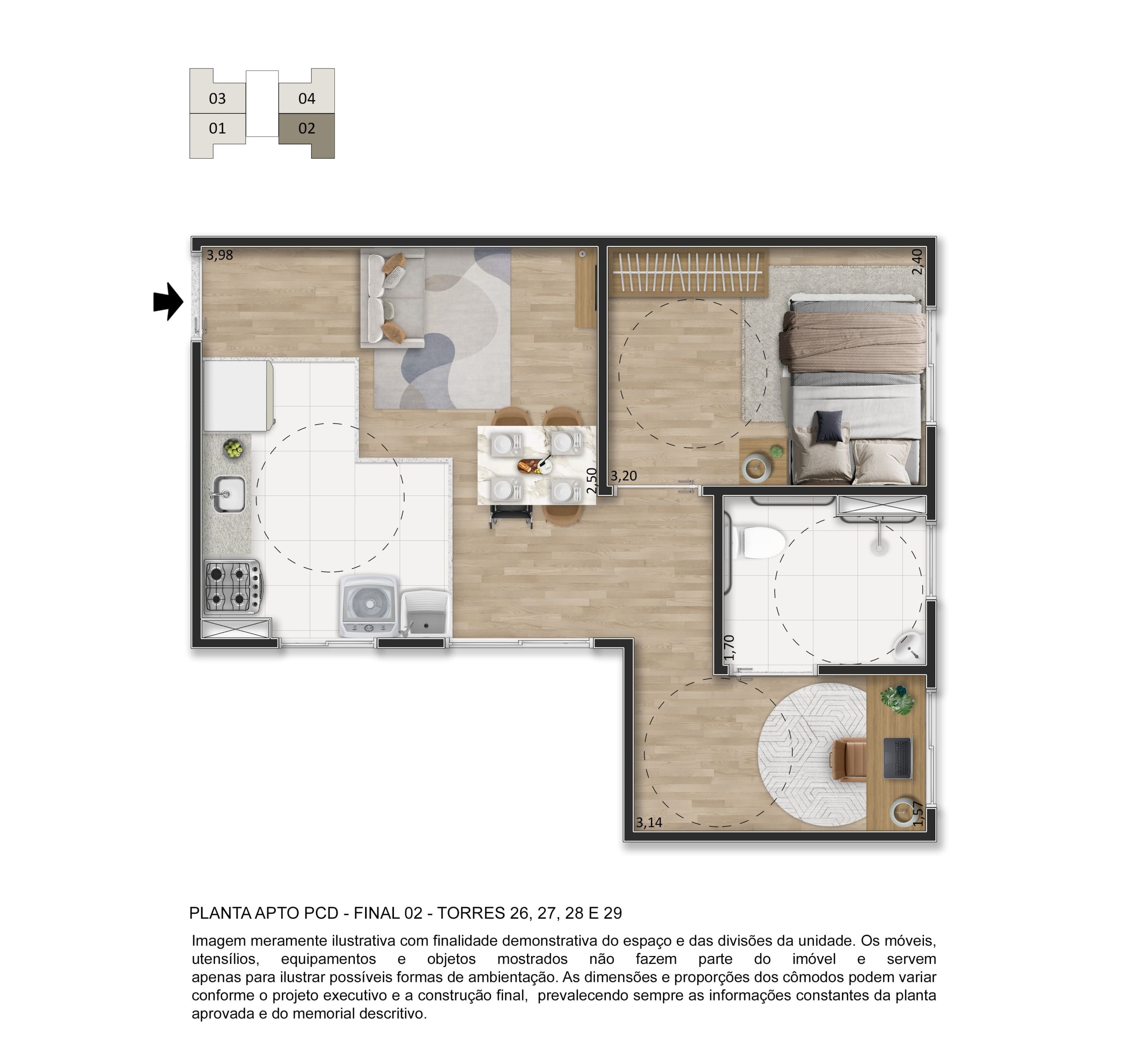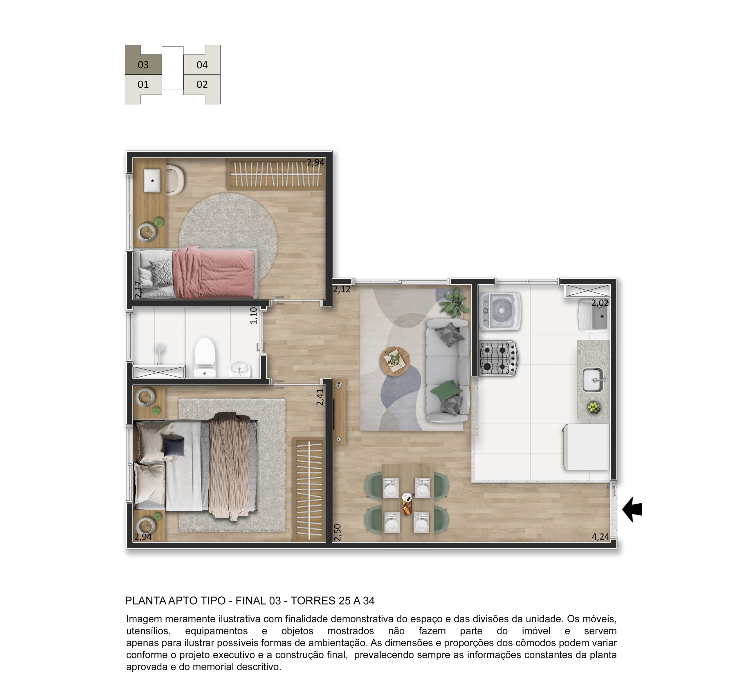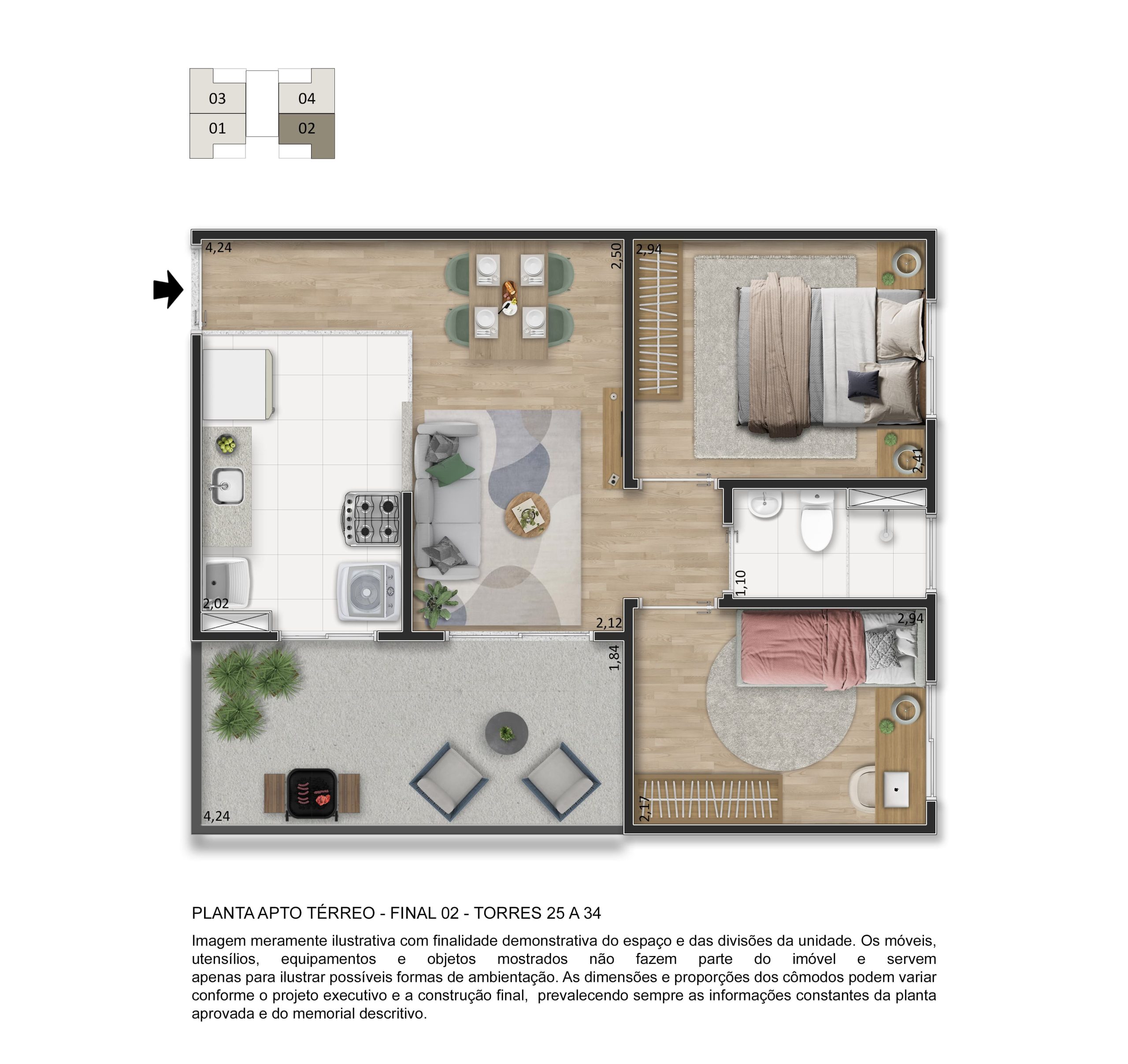 O lazer é completo e entregue decorado e mobiliado, com piscina, quadra esportiva, salão de festas, academia, playgrounds, espaço fitness, espaço gourmet, pet place, bicicletário, espaço zen e muito mais, garantindo momentos especiais para toda a família.